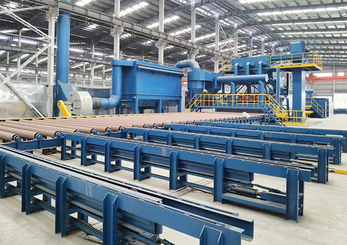 拋(噴)丸設備有:大型噴砂房系列、鋼板預處理生產線、H型鋼通過式拋丸機、履帶式拋丸機、吊鉤式拋丸機、轉臺式拋丸機等表面清理設備。
